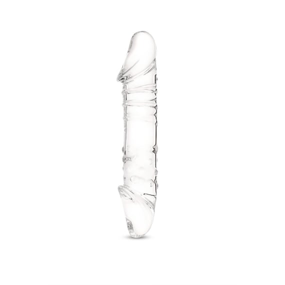 This transparent glass dildo features a massive 8.72-inch total insertable length with a variable 4.49 to 5.46-inch circumference, connecting two realistic rounded tips with a raised swirl ridge texture. Crafted from medical-grade borosilicate, the body warms or cools instantly for sensation play, keeping your exploration safe, hypoallergenic, and effortlessly smooth.