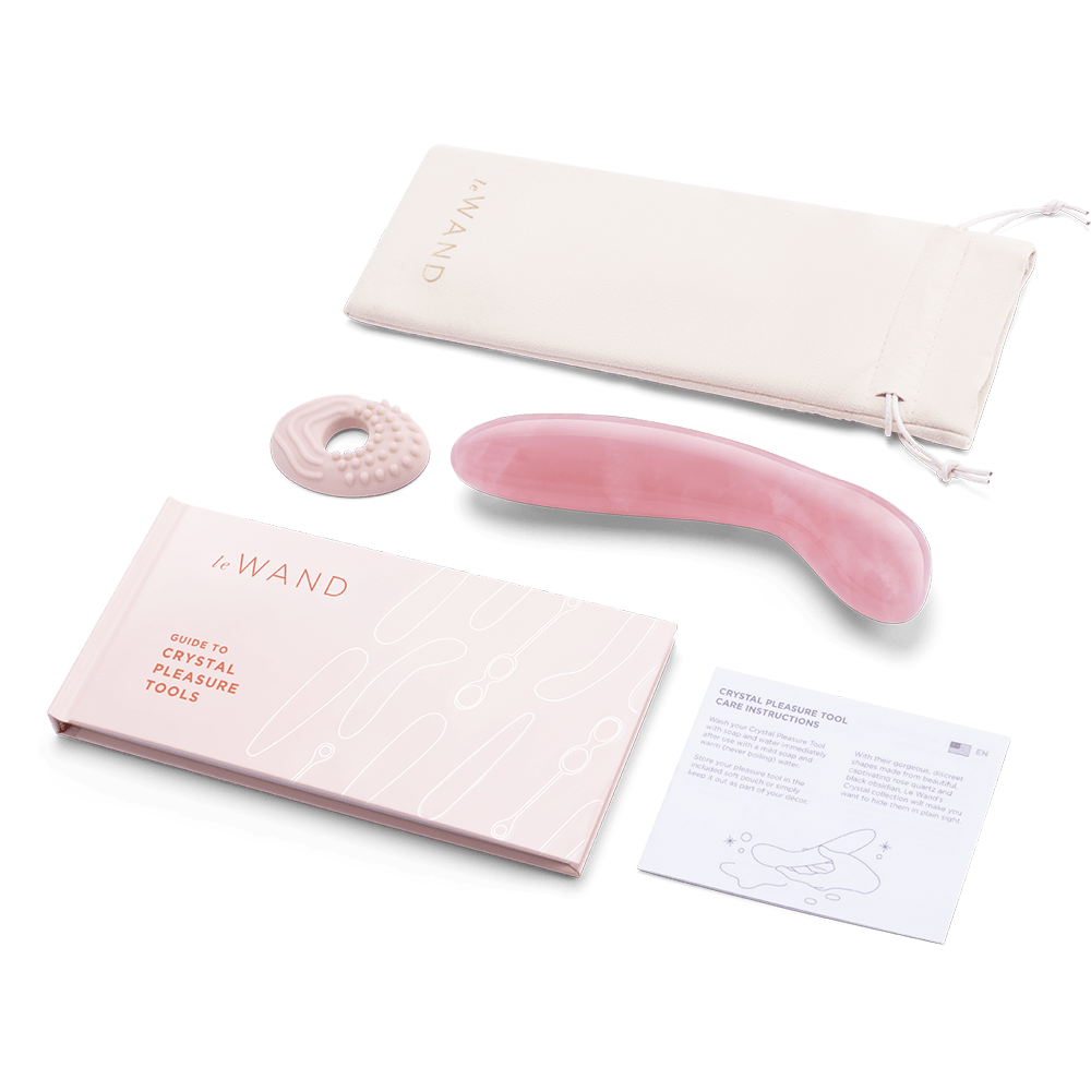 Each Crystal Wand comes with a textured, stimulating silicone ring, a travel pouch, a care guide, and a hardcover guide to get you started.