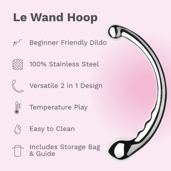 Lay back and relish in the depths of pleasure by yourself or with your partner with the Le Wand Hoop. The perfect curvature and ample reach of this stainless steel wand will leave you in awe with its satisfying weight and pressure. Allow the Hoop wand to firmly caress your pleasure spots in all the right way, the Hoop features a beginner-friendly, easy-to-insert small bulb and a larger bulbous teardrop end with ripples for an added delightful textured sensation. Both ends are excellent for mind-blowing G-spot and P-spot play.