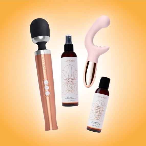 The Wand Massager Couples Bundle includes our best-selling Le Wand 4 fl.oz. Water-Based Lube and 8 fl.oz. Organic Toy Cleaner.